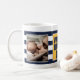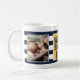Happy Father's Day! Modern Best Dad Ever Coffee Mug. With Navy Blue and White Stripes and a personalised Robin's Egg Blue Monogram. Add 2 Photos! Honouring the World's Bravest Dad, serving the military.