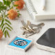 Black, white, and blue oval and text design reads "World's Coolest Dad" on dad keepsake boxes, tiles, ornaments, notebooks, mugs, tote bags, cards, buttons, magnets, keychains, and more!