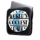 Black, white, and blue oval and text design reads "World's Coolest Dad" on dad keepsake boxes, tiles, ornaments, notebooks, mugs, tote bags, cards, buttons, magnets, keychains, and more!