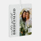 Modern bridesmaid keepsake ornament featuring a minimalist white background, a photo template, the cute saying 'world's greatest bridesmaid', a thank you message, and the year.