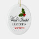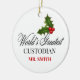 Christmas Ornament for your favourite custodian or janitor that has red berry holly and the words World's Greatest custodian .