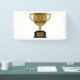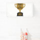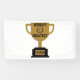 This banner features the words "World's Greatest Father" displaying a yearbook bold print font with black letters plus a winners wreath with number 1 in the centre over a golden coloured flat style cup trophy on a black base in this Father's Day theme. This banner has single side printing outdoor safe measures 1.6"x3" made with an elegant matte finish and is both fade and tear resistant for Indoors or outdoor use great for advertise anything, from birthdays to graduation, weddings to anniversaries. Hemmed and thermally welded edges for neat finish outdoor banners can be bought with metal grommets.