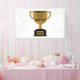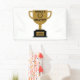 This banner features the words "World's Greatest Father" displaying a yearbook bold print font with black letters plus a winners wreath with number 1 in the centre over a golden coloured flat style cup trophy on a black base in this Father's Day theme. This banner has single side printing outdoor safe measures 3"x5" made with an elegant matte finish and is both fade and tear resistant for Indoors or outdoor use great for advertise anything, from birthdays to graduation, weddings to anniversaries. Hemmed and thermally welded edges for neat finish outdoor banners can be bought with metal grommets.