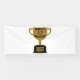 This banner features the words "World's Greatest Father" displaying a yearbook bold print font with black letters plus a winners wreath with number 1 in the centre over a golden coloured flat style cup trophy on a black base in this Father's Day theme. This banner has single side printing outdoor safe measures 4"x10" made with an elegant matte finish and is both fade and tear resistant for Indoors or outdoor use great for advertise anything, from birthdays to graduation, weddings to anniversaries. Hemmed and thermally welded edges for neat finish outdoor banners can be bought with metal grommets.
