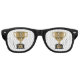 These party sunglasses features the words "World's Greatest Father" displaying a yearbook bold print font with black letters plus a winners wreath with number 1 in the centre over a golden coloured flat style cup trophy on a black base in this Father's Day theme. These shades have 100% UV protected clear scratch resistant lens with full colour printing and includes a microfiber pouch for storage and cleaning.