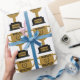 This wrapping paper features the words "World's Greatest Father" displaying a yearbook bold print font with black letters plus a winners wreath with number 1 in the centre over a golden coloured flat style cup trophy on a black base in this Father's Day theme. All wrapping papers are offered in four types of premium paper and five different sizes. Has a softer surface and dull finish with full colour edge to edge printing on 60lb, text weight matte paper. Great for all types of gift wrapping for anything, from birthdays to graduation, weddings to anniversaries.