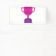 This banner features the words "World's Greatest Mother" displaying a yearbook bold print font with purple letters plus a winners wreath with number 1 in the centre over a pink coloured flat style cup trophy on a purple base in this Mother's Day theme. This banner has single side printing outdoor safe measures 2"x1" made with an elegant matte finish and is both fade and tear resistant for Indoors or outdoor use great for advertise anything, from birthdays to graduation, weddings to anniversaries. Hemmed and thermally welded edges for neat finish outdoor banners can be bought with metal grommets.