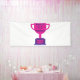 This banner features the words "World's Greatest Mother" displaying a yearbook bold print font with purple letters plus a winners wreath with number 1 in the centre over a pink coloured flat style cup trophy on a purple base in this Mother's Day theme. This banner has single side printing outdoor safe measures 4"x10" made with an elegant matte finish and is both fade and tear resistant for Indoors or outdoor use great for advertise anything, from birthdays to graduation, weddings to anniversaries. Hemmed and thermally welded edges for neat finish outdoor banners can be bought with metal grommets.