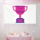 This banner features the words "World's Greatest Mother" displaying a yearbook bold print font with purple letters plus a winners wreath with number 1 in the centre over a pink coloured flat style cup trophy on a purple base in this Mother's Day theme. This banner has single side printing outdoor safe measures 6"x10" made with an elegant matte finish and is both fade and tear resistant for Indoors or outdoor use great for advertise anything, from birthdays to graduation, weddings to anniversaries. Hemmed and thermally welded edges for neat finish outdoor banners can be bought with metal grommets.