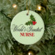 Christmas Ornament for your favourite Nurse, CNA, LPN, RN, or Don that has red berry holly and the words World's Greatest Nurse.