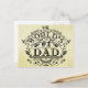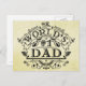 This stylish Father's Day postcard says "The World's #1 Dad" in a very fancy, vintage looking - yet original - design that combines black retro text with plenty of ornate flourishes, arrows, a banner and pointing hand icons. If your dad is the world's best, show it off with this elaborate, intricate and very cool postcard design, reminiscent of Victorian or Edwardian advertisements. The background is made to look faded and aged with a slight grunge effect.