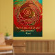 Many circles symbolise how innovative, constructive expressions finding their way into form. Bubbles that lift up with their shared creative abilities. The art expressed by the design is a simple to use gazing/ centring tool that supports deep relaxation. The space within the geometric lines helps to stay tuned with the guidance of the intuitive inner voice. The art is a magnet for well-being and a everyday life enhancer for home and therapeutic/creative work spaces. Hand drawn and merged in mixed media, printed in light gold coloured lines on a red, green and turquoise background .