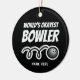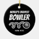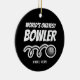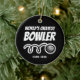 World's Okayest Bowler fun Christmas tree ornament. Custom design with name template. Add your own greeting, funny quote, name, team name etc. Cute gift idea for bowling friends, family, player, mum, dad, coach, kids, boy, girl, coworker etc. Themed xmas decoration. Includes sparkly gold string. Happy Holidays! Add your own photo on the back optionally.
