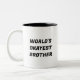 Say it with a custom mug featuring minimalist trendy text design with "World's Okayest Brother" in bold italic typography! Make it a funny special gift for your brother, or anyone who loves funny sayings on coffee mugs. The text is also editable, so you can customise it on both sides.