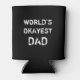 World's Okayest Dad can cooler Fathers Day gift. Funny quote for dad on Father's Day or Birthday. Personalizable text and background colour. Cosy gift idea for daddys manly man cave. Vintage masculine typography. Keeps beer cool. Mens humour. Doubles sided rustic print.