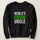 World's okayest uncle. World's in uppercase white black sans font. Okayest in black uppercase font with neon green coloured surround. Uncle in white uppercase font can be customised with another word or description.