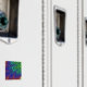 This asymmetric colourful tube shaped fractal, blend the colours of bright neon green, dark royal blue, purple, violet and red. Black stripes separate the colours. The wormholes branch their tentacles into the infinity of space. Yellow and red streaks accent the area between the tubes and culminate in royal blue sceptres, surrounded by folds of velvety looking colours that have a silk or satin like appearance.