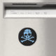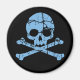 A blue skull and crossbones with a worn and distressed texture for that vintage look.
