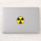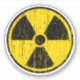 Sticker featuring a worn and distressed nuclear radiation symbol.