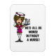 A cute nurse design featuring a brown haired nurse with a tray with water and a pitcher and text that reads We'd All Be Worse Without a Nurse on nurse T-shirts, bags, mugs, stickers, cards, magnets, and other nurse apparel and gifts.