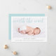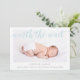 Welcome your sweet miracle with this photo birth announcement. Featuring a photo with the message "Worth the Wait" in blue, with the baby's name and stats in grey. It also allows for a photo on the back.