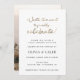 Wedding reception invitation featuring "worth the wait to finally celebrate!" in a fun faux gold foil script. Customise with your photo on the backside or delete if no photo is desired.