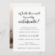 Wedding reception invitation featuring "worth the wait to finally celebrate!" in a fun black script. Customise with your photo on the backside or delete if no photo is desired.