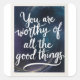 You Are Worthy Of All The Good Things reminds that special someone just how important they are. Additionally, this design can help remind you of your worth. Remember positive affirmations can go far.