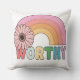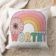 Add a touch of encouragement and pastel charm to your space with the Worthy Rainbow Bloom Throw Pillow. Featuring a retro-inspired rainbow, blooming daisy, and the bold word “WORTHY” in rainbow hues, this pillow is more than décor — it's a gentle reminder of self-love and positivity.