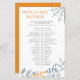 Would She Rather Game sheet, with editable game instructions - fun guessing quiz to play at your halloween baby shower or bridal shower This fall themed design has windswept autumn foliage and cobweb in a colour palette of orange, grey and storm blue. Coordinating items can be found in my store, in the Little Boo Halloween collection.
