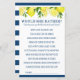Featuring bold all-caps text, clean design, and a fresh citrus vibe, this game is perfect for summer showers, brunches, or backyard garden parties. Pair it with other coordinating lemon-themed games, signs, and decor for a picture-perfect celebration.
