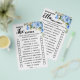 Blue Flowers Would She rather Bridal Shower English and Spanish version game included (front and back). Change wording for English and Spanish versions. For additional customisation (change question and other wording, font colour, font style ), click on personalise, scroll down and click on the link "click to customise further".