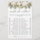 The Would She Rather Winter Floral Bridal Shower Game captures the serene beauty of a winter wonderland, combining delicate florals and natural evergreen elements to create a charming and elegant design. The evergreen foliage represents strength and resilience, while creating a harmonious balance with the florals. Elegant calligraphy enhances the sophistication of the design, with a flowing script that mirrors the delicate curves of the flowers. Whether you're hosting a bridal shower in a cosy cabin or a chic urban setting, this design brings the beauty of nature and the elegance of winter to the forefront. Matching items are available.