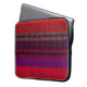 This laptop sleeve features an image of a colourful abstract pattern of woven horizontal bands. The brilliant colours of red, purple, blue and black seem to glow. You can add text if you wish.
