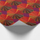 This striking wrapping paper features a repeating pattern of a decorative geometric abstract design. Brilliant colours of red, orange, gold, brown, yellow , maroon and green all converge at the centre in a vortex pattern. The central circle has repeating triangles resembling various woven textures.