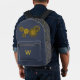 This design features a set of clockwork gears embellished with Celtic weaves on the sides and teeth. Great for bringing a subtle bit of Steampunk in your everyday life. Customise the initial on the front pouch of this backpack with your own monogram to make this accessory uniquely yours.