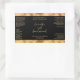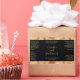 This elegant product label for cosmetic bottles features a black background with a faux woven gold foil border. This label contains space for your product name, business name, product weight, ingredients, instructions, social media, and business address.