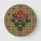 Lovely red flowers with green leaves in a brown pot on a tan basket-weave. Weave is computer generated and fake, but it looks cool on stuff!