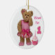 A perfect way to celebrate your little girl's first birthday- a teddy bear in pink with a cupcake topped with one candle.