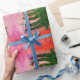 Happy winter holidays special gift wrap with watercolor green holiday tree with hearts.
