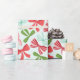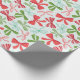 Trendy Christmas bow wrapping paper in colours of green, red, blue, and pink.