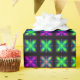 Digital art repeating pattern / wallpaper / print of a cool vaporwave pattern with neon x crosses in purple, green, and blue.