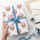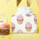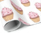 This gift wrapping paper is shown in a white paper with a cute Birthday pink cupcake print design.