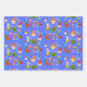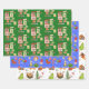 Colourful and funny Christmas gifts wrapping paper with multiple elements and characters to cheer the season of giving.
