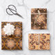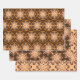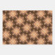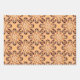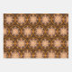 Three sheets of wrapping paper with brown and orange medallions. Each sheet is a different variation. All occasions . The medallions are based on actual tiles From Oregon tile maker Fay Jones Day