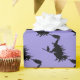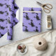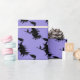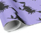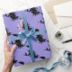 This wrapping paper is shown in a purple colour paper with a festive Halloween witch print.