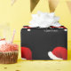 A red Santa hat and white text on black background wishes your gift recipient a Merry Christmas with their name on it.