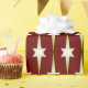 Wrapping paper has a star on it, good for Christmas gifts or any time.