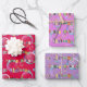 Wrapping paper set of 3, red colour tones, suitable for birthday party and other family celebrations. Happy birthday text consists of magazine letters, rainbow bubbles.