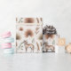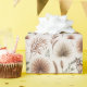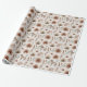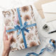 "Wrapping paper with a pattern of brown and white horses and abstract flowers. The top image shows the paper partially unrolled, while the bottom displays it flat."